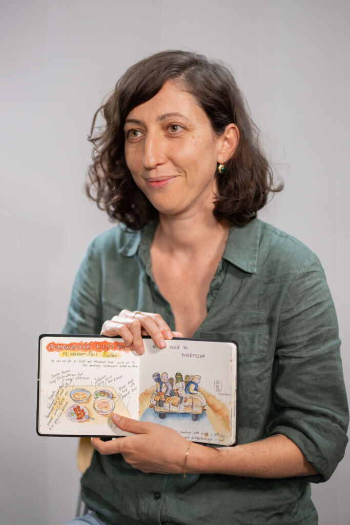 I visited Sudan twice in 2025, once to the east, once to the west. I wanted to document what I was seeing, what I was feeling. So, I sketched little details: markets, coffee shops, roads, food. To show that Sudan is more than conflict. Alongside war, there is resilience, beauty and everyday life.